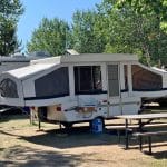 Pop-up campers, also known as fold-out campers, tent trailers, or expandable campers, are a type of recreational vehicle that can collapse down into a condensed, portable package. You tow it behind your vehicle in a small folded state, then when you get to the campsite, you raise the roof and pull out the slide-outs to create more sleeping and living space.