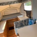 Part canvas construction is what makes it go from a small size while in transit to an ample living space when completely folded out at the destination. Pop-up campers come with a sleeping area, small kitchen.